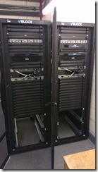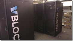 We purchased two Vblocks to go into two separate datacenters. Datacenter A was supposed to be a very simple install with about a thirty meter run from the delivery bay to the final location. What we ended up having to do is remove one of the internal door frames to ensure all five cabinets could be moved into place. Below are a few photos taken of the delivery for Datecenter A: